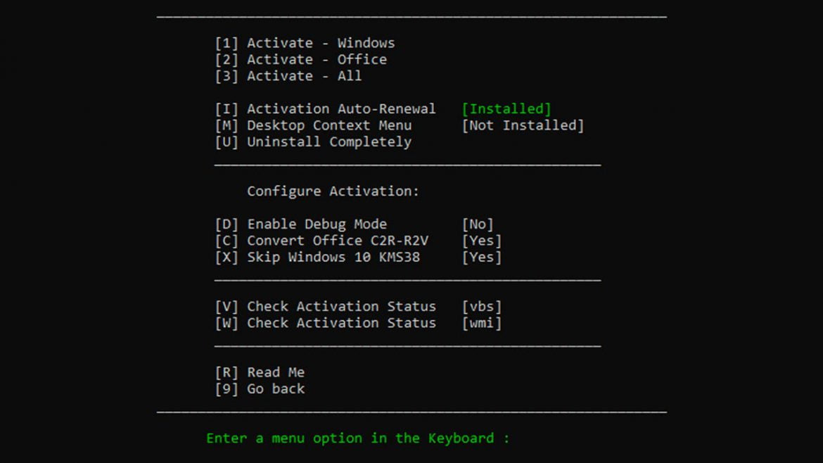 - Kích hoạt KMS38 [Với tùy chọn bảo vệ và gỡ cài đặt]
