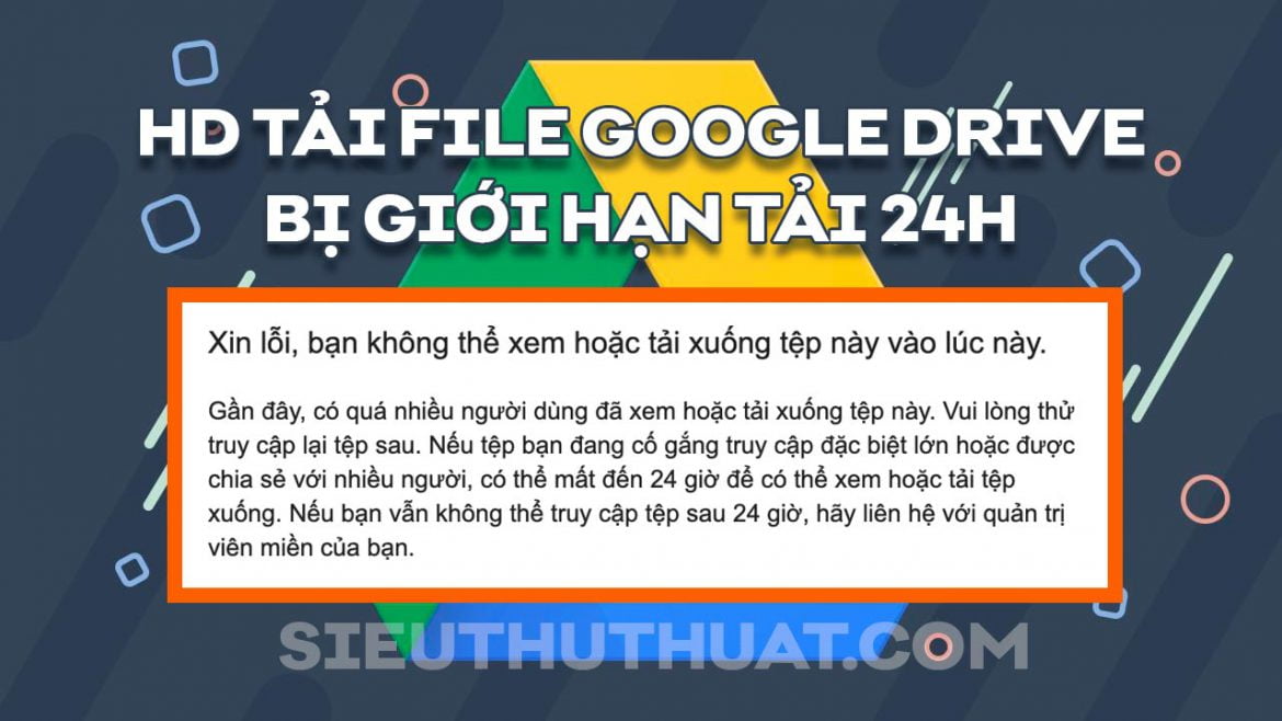 Cách tải file Google Drive bị giới hạn tải 24h